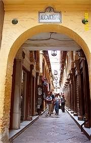 This is now taken up with souvenir shops but it was once a great bazaar where silk was made and sold. Alcaicería literally means either the “house of Caesar” or “belonging to Caesar” in recognition of the fact that Emperor Justinian granted the Moors permission to sell silk. Traditionally these bazaars were situated in the centre of a city, with inns where the merchants could stay, and with gates at all the entrances to guard against looting and which were closed at night. The narrow streets inside were then patrolled by watchmen.
